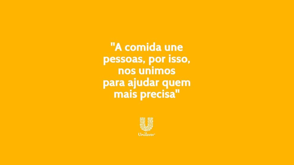 A iniciativa faz parte do “Todos à mesa”, rede de solidariedade com a participação também da Coca-Cola Brasil, Copagaz e IFood. O consumidor compra uma marmita a partir de R$ 9,00 no Eats for You, Ame Digital ou IFood, e a Unilever dobra a doação para alimentar um número maior de pessoas e aumentar o faturamento dos pequenos restaurantes. As refeições serão entregues no Parque Santo Antônio, na zona sul de São Paulo, na Sociedade Beneficente dos Franciscanos e na Rede Rua.